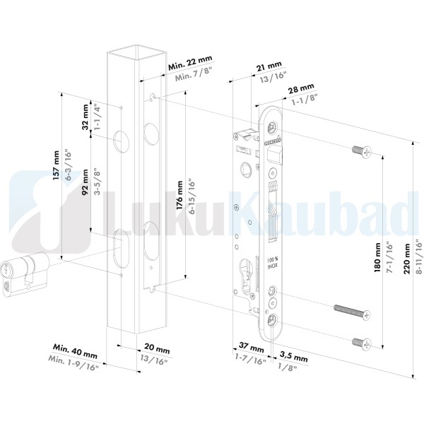 Jalgvärava raamisisene lukukorpus LOCINOX Fortylock (92/20 mm, Roostevaba teras)